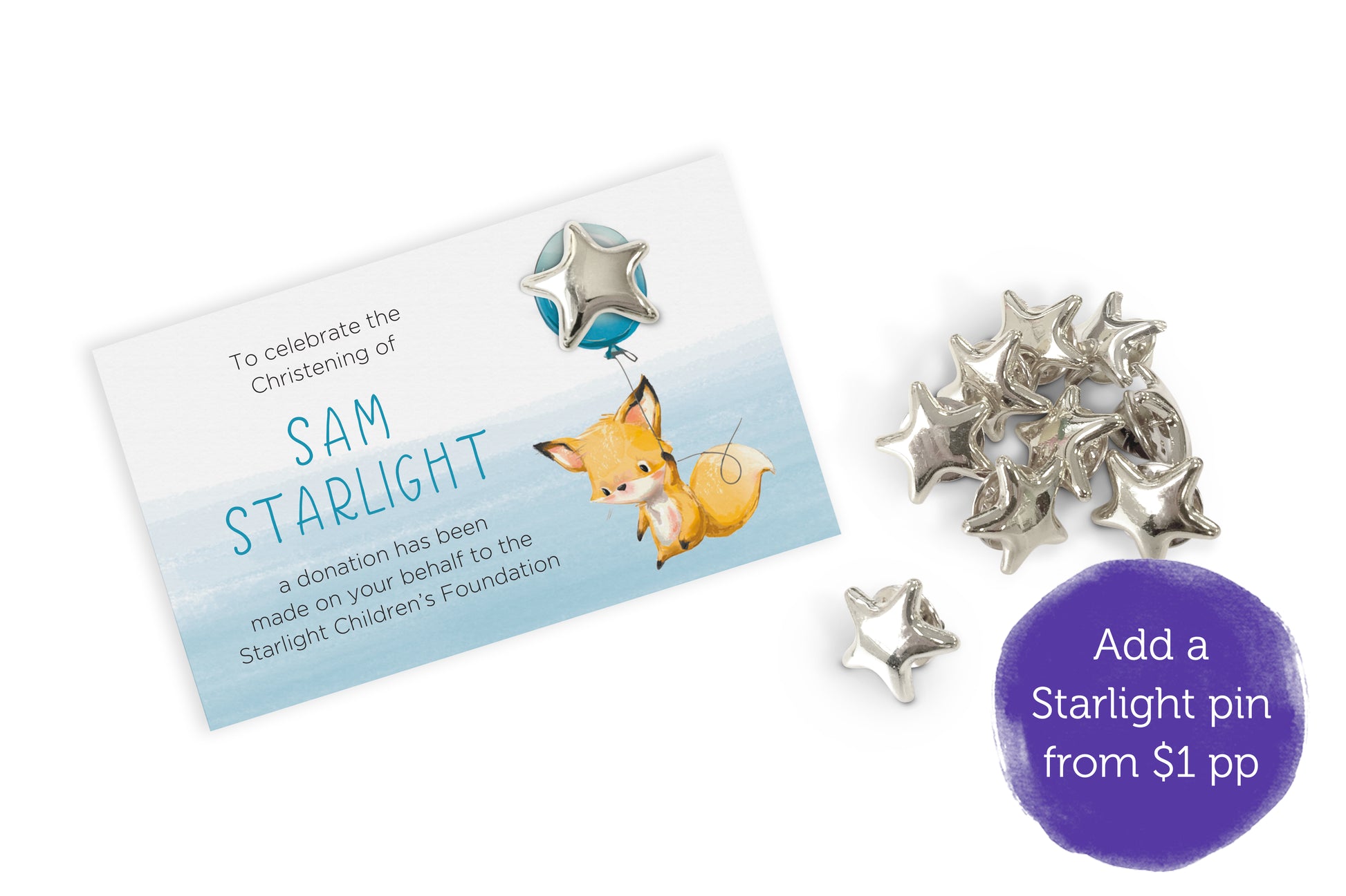 Make your celebration all the more special with a Starlight Bonbonniere for your guests. Whether it's a birthday, baby shower or anything in between, thank your guests with a lasting gift of happiness. These magical keepsakes say more than thank you. They bring joy and happiness to seriously ill children in hospital.