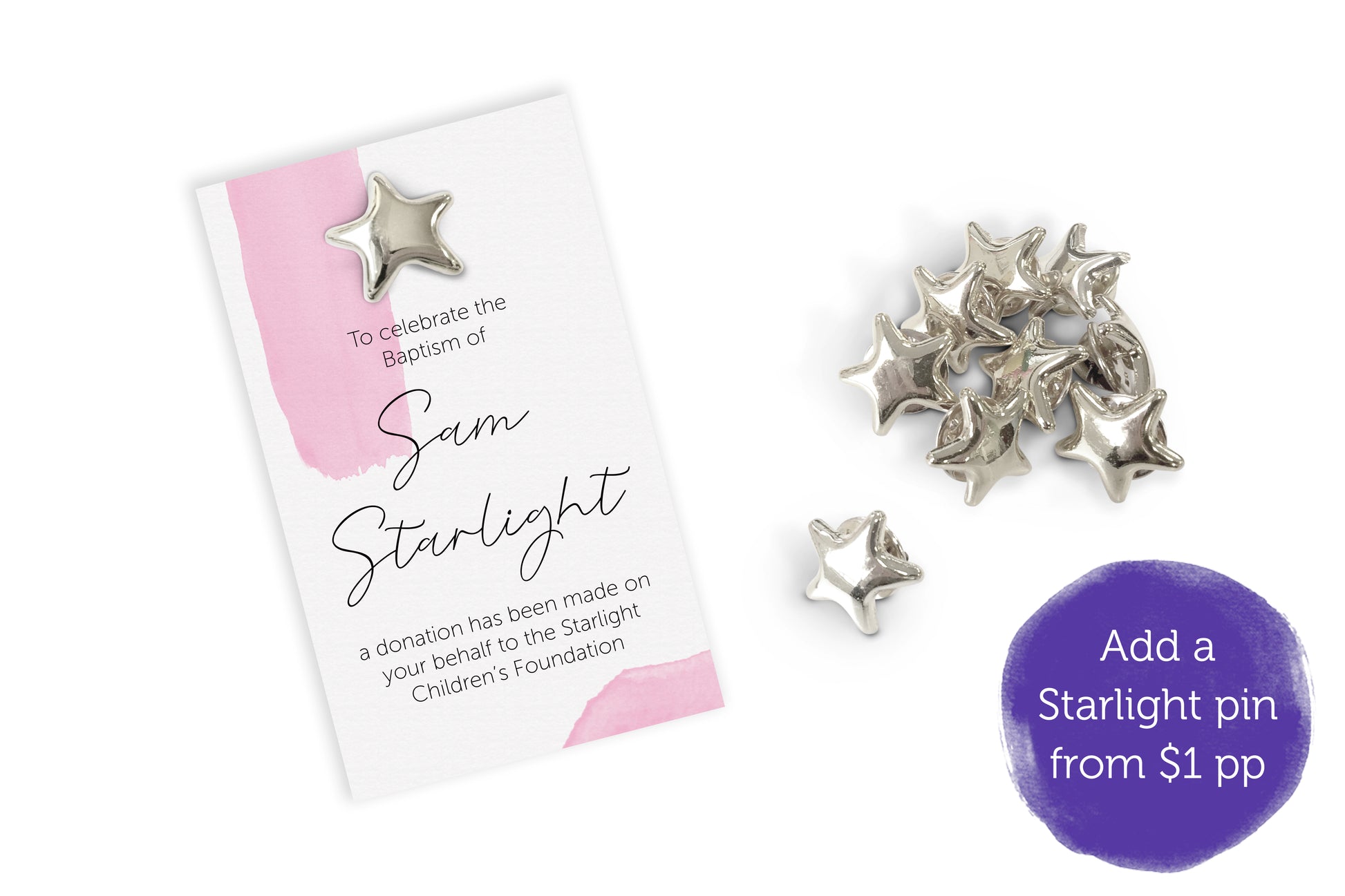 Make your celebration all the more special with a Starlight Bonbonniere for your guests. Whether it's a birthday, baby shower or anything in between, thank your guests with a lasting gift of happiness. These magical keepsakes say more than thank you. They bring joy and happiness to seriously ill children in hospital.